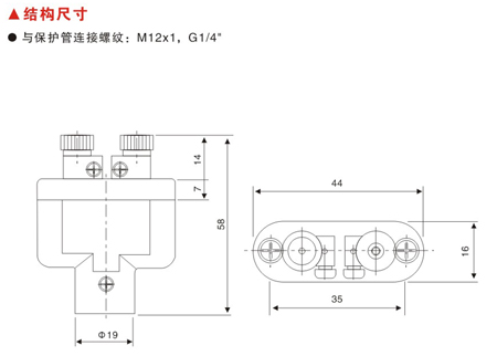 與保護(hù)管連接螺紋: M12x1, G1/4"