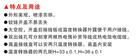 ●高蓋接線盒可以安兩只溫度轉換器,高蓋內安裝。