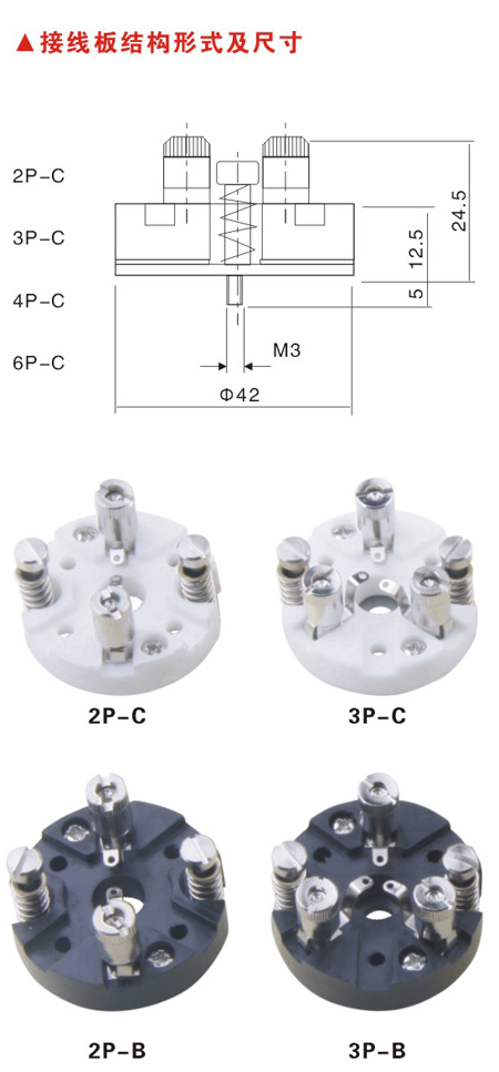 ●可以裝配各種結構的熱電偶、熱電阻和帶溫度轉換器的熱電偶、熱電阻。