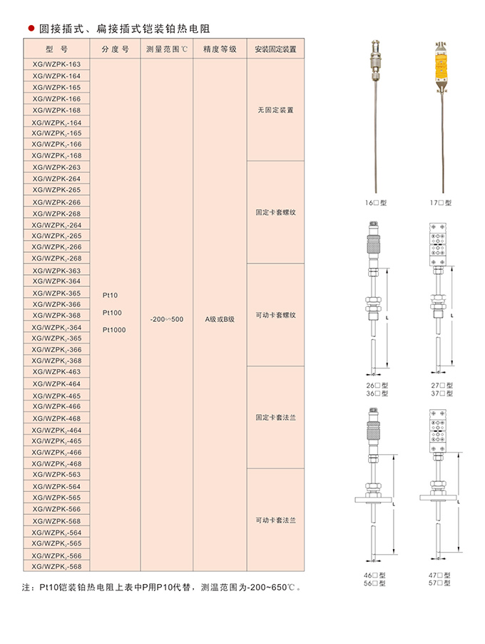 • 圓接插式(扁接插式)鎧裝鉑熱電阻