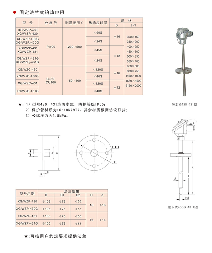 固定法蘭式裝配熱電阻