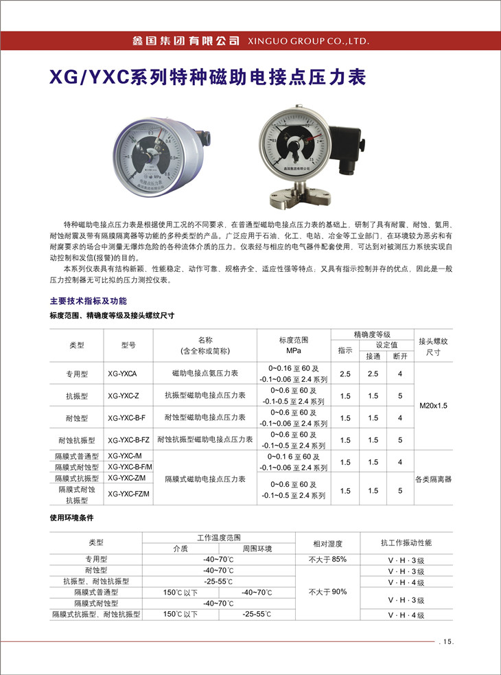 XG / YXC 系列特種磁助電接點(diǎn)壓力表: